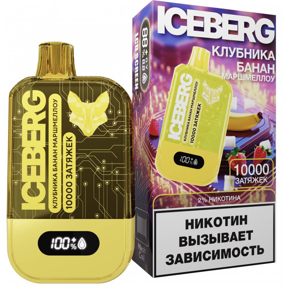 Электронная сигарета ICEBERG XXL 10000 Клубника банан маршмеллоу - купить в Великих Луках